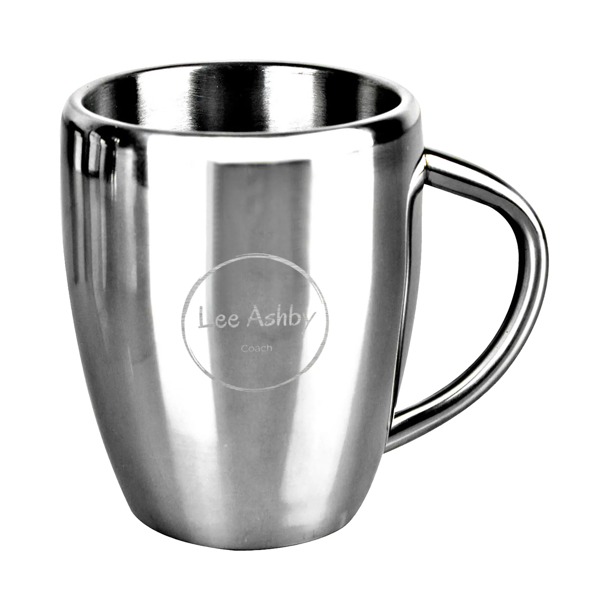 Full Description: Delightful 200 ml double wall vacuum insulated stainless steel coffee cup with a curved design, it keeps the coffee hot for longer and engraves to a natural etch.