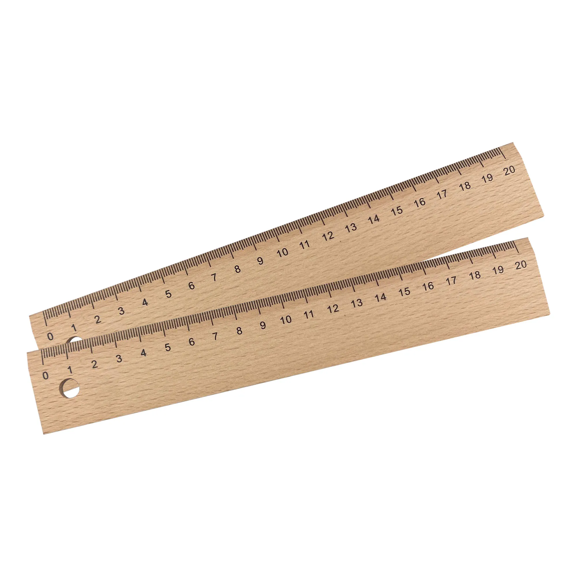 Full Description: 20cm beech wood ruler is printed with black ink in centimeters, natural beech wood produces the variances in the grain pattern, colour and branding. It has a hole on one end for hanging on the wall, and with one side graduation in centimeters.
