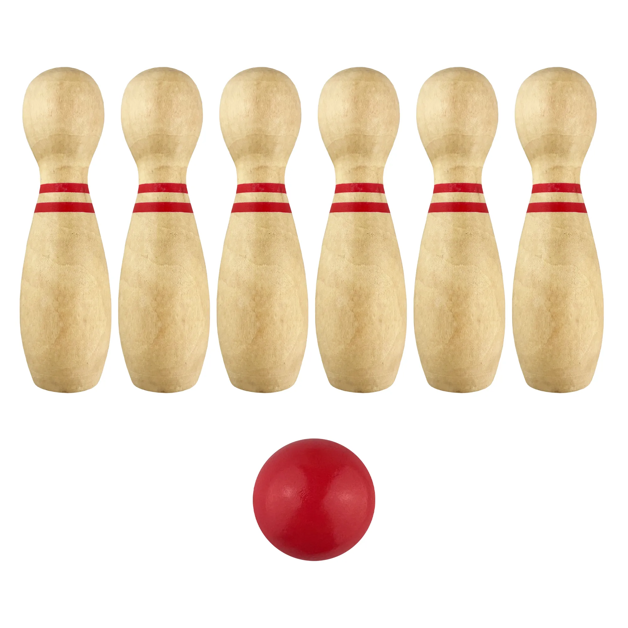 Full Description: A perfect travel game to put in your bag to play anywhere and entertain the little ones in the house! Ten pin wooden bowling set packed into a soft cotton draw-string bag which can also be branded. Contains six wooden pins and 1 red wooden bowling ball.