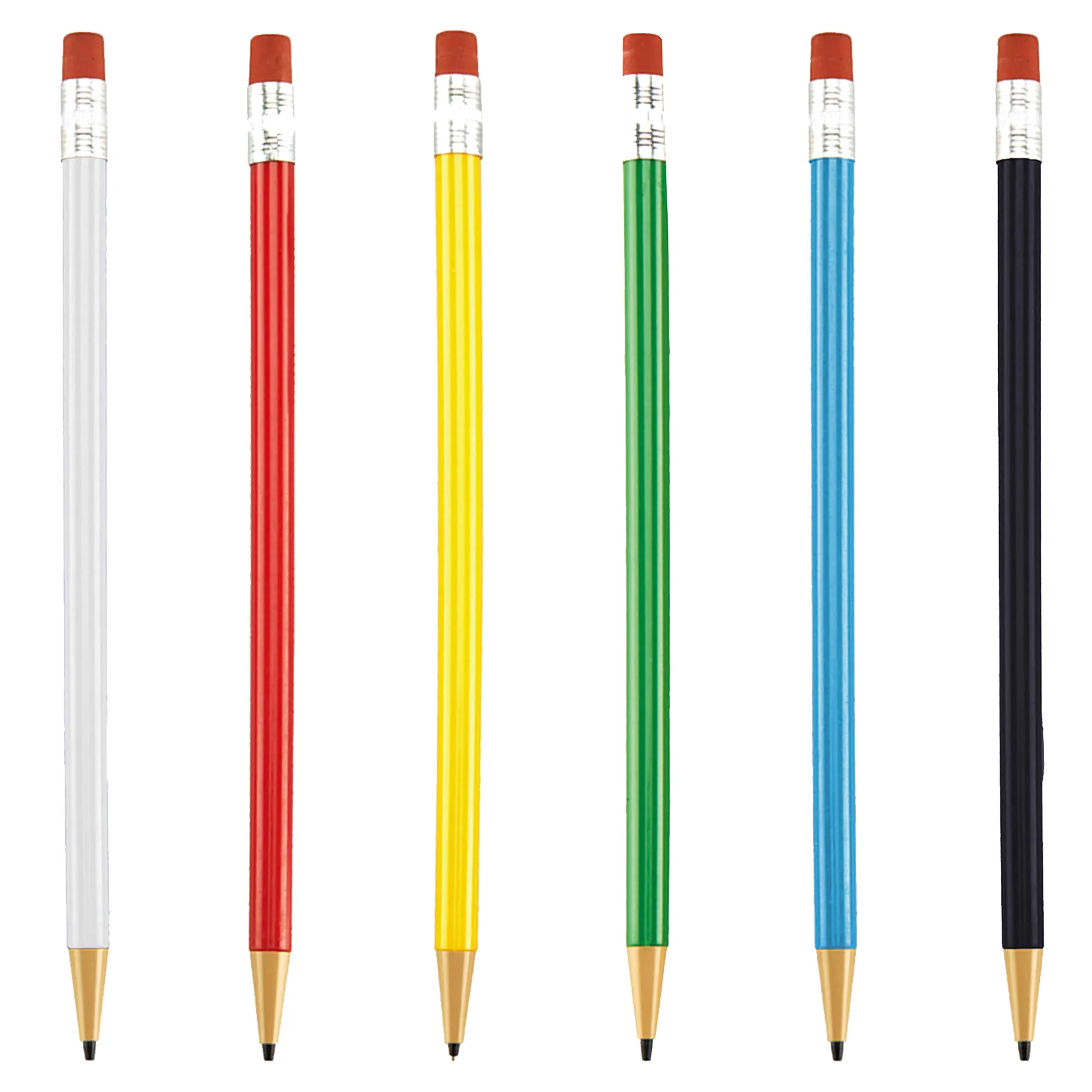 Full Description: A unique mechanical push vending pencil, 0.5mm HB pencil lead, no sharpener needed. Plastic coloured round barrel with rubber.