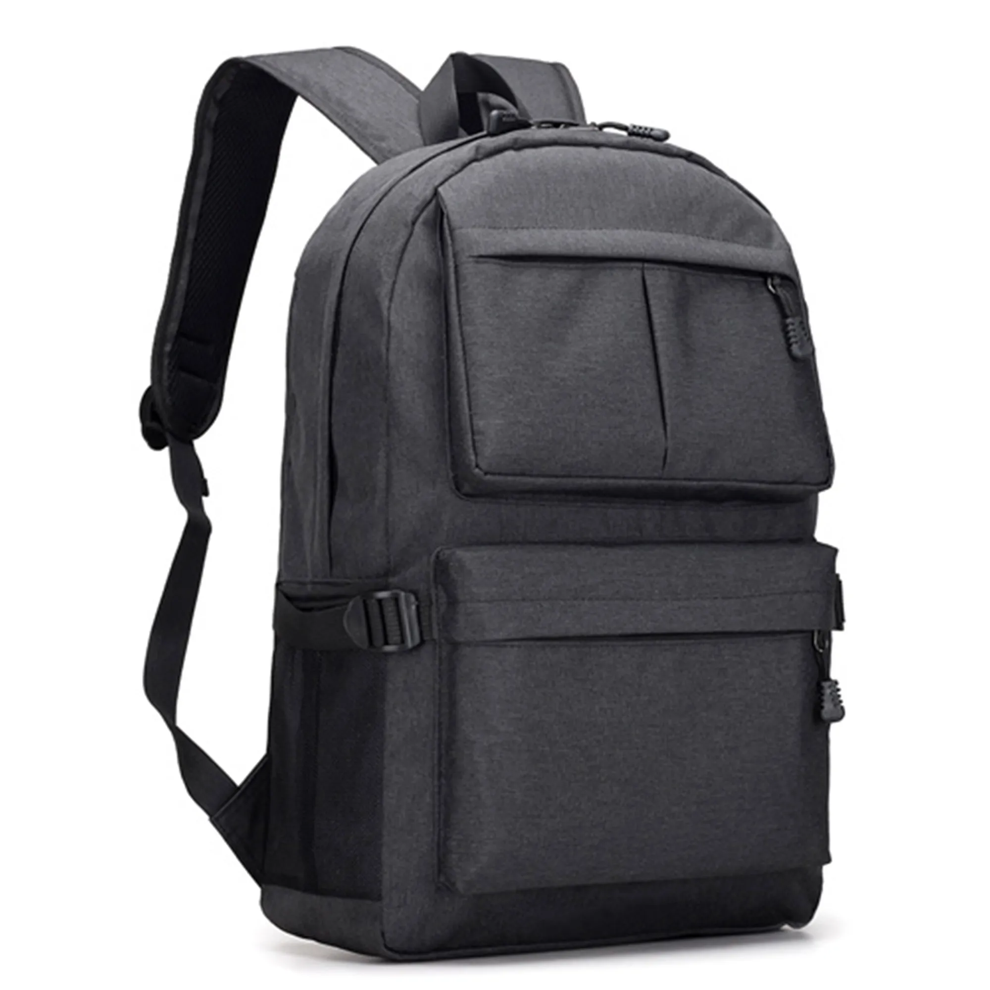 Full Description: This modern fashion design business/school laptop backpack is made from high quality 600D polyester oxford fabric. It has two front zipped pouches. Inside has 1 large pouch for laptop and iPad, 2 small pouches for small personal items. Two side mesh pockets have adjustable straps to tighten the contents. It also features USB charging port and adjustable shoulder straps.
