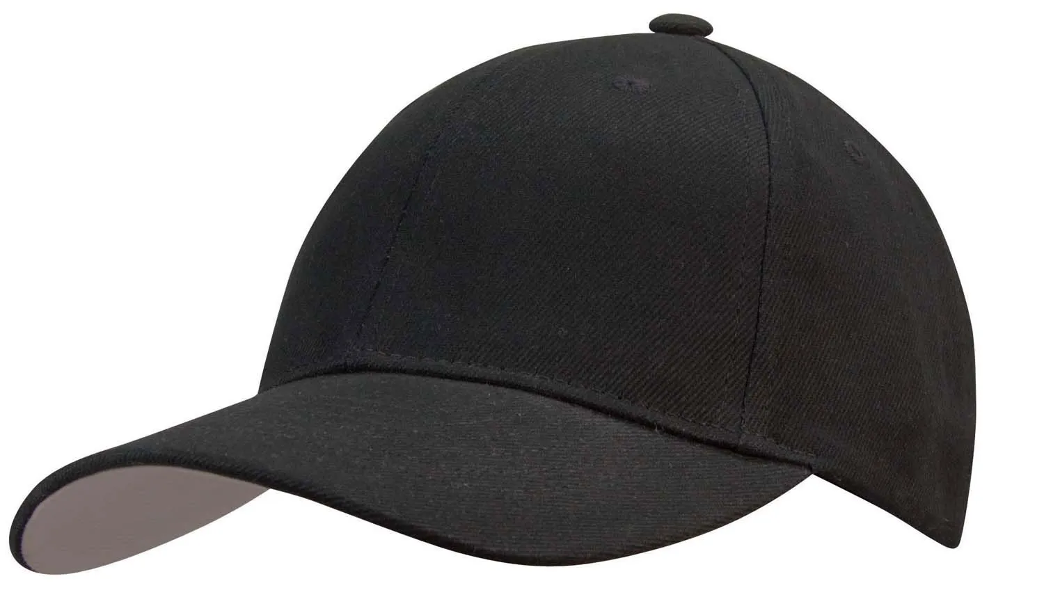 Structured six panel heavy brushed cotton cap with contrast colour under the peak. It has embroidered eyelets, a pre-curved peak and a short strap with Velcro fastener.