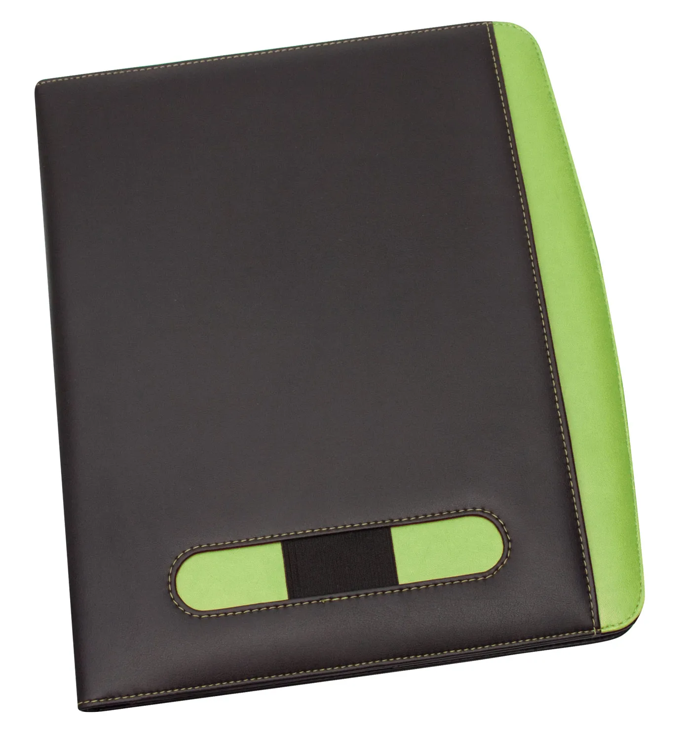 A4 Compendium with contrasting colour accents and elastic pen loop.