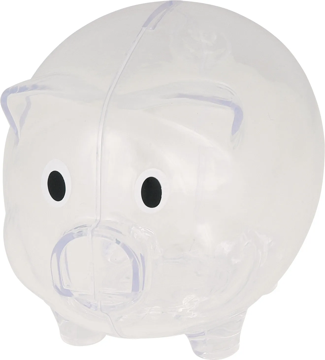 Translucent Piggy Bank with removable stopper in base and large branding area.
