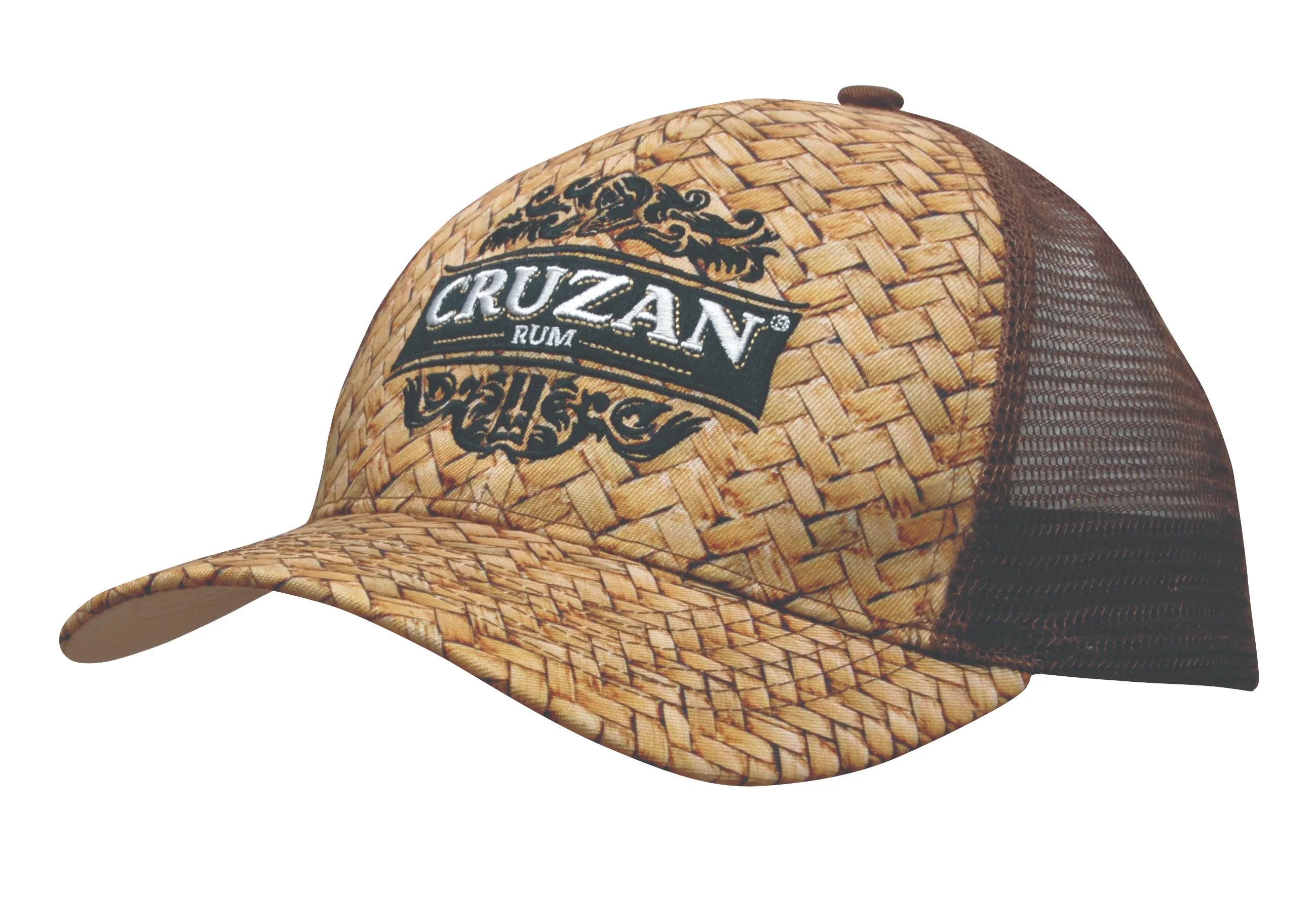 Full Description: Structured 6 Panel Cap Pre-Curved Peak Twin Hole Plastic Strap